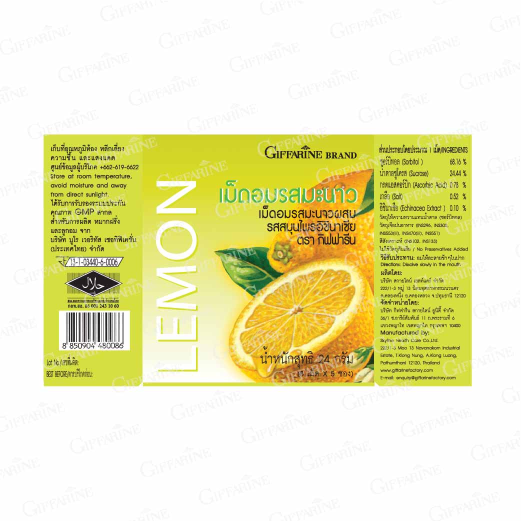 เม็ดอมรสมะนาวผสมรสสมุนไพร อิชินาเชีย ตรา กิฟฟารีน อร่อย มีส่วนประกอบของสมุนไพรอิชีนาเชียและวิตามิน ซี