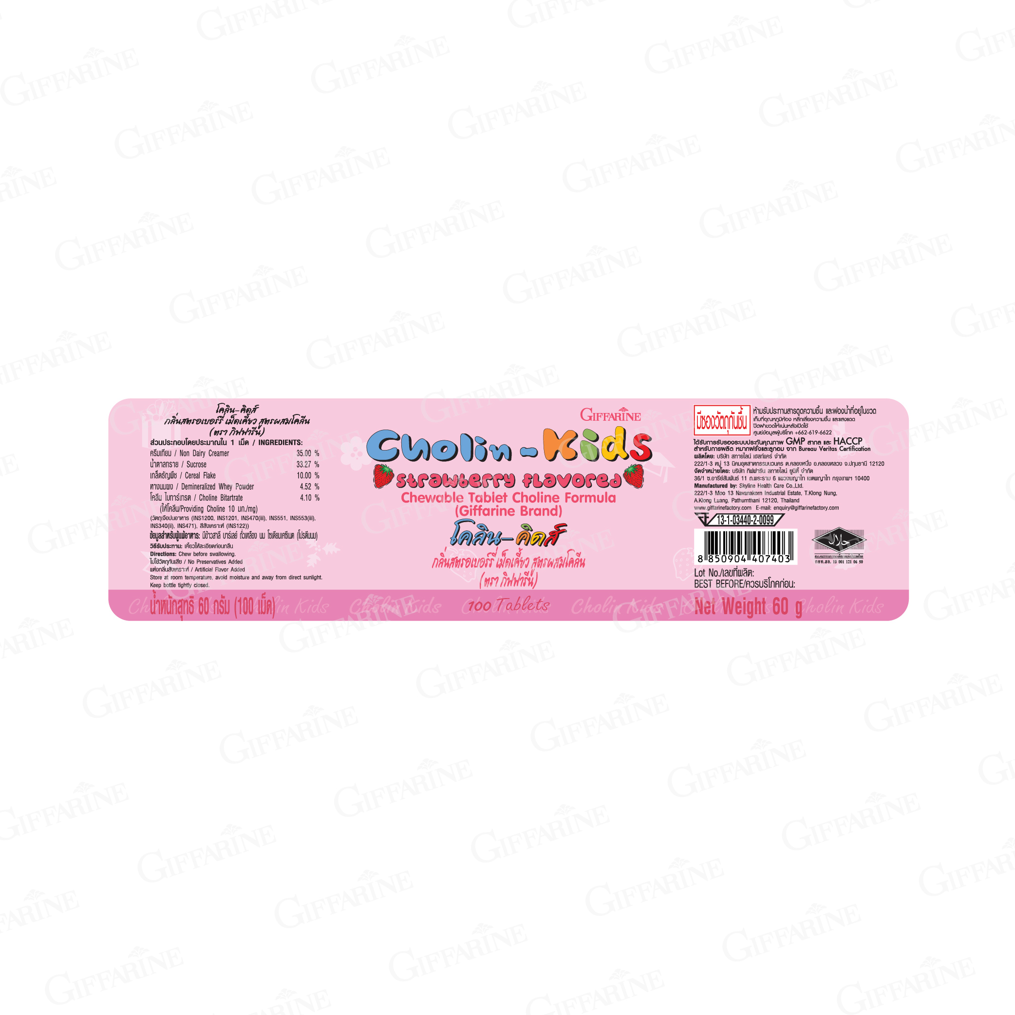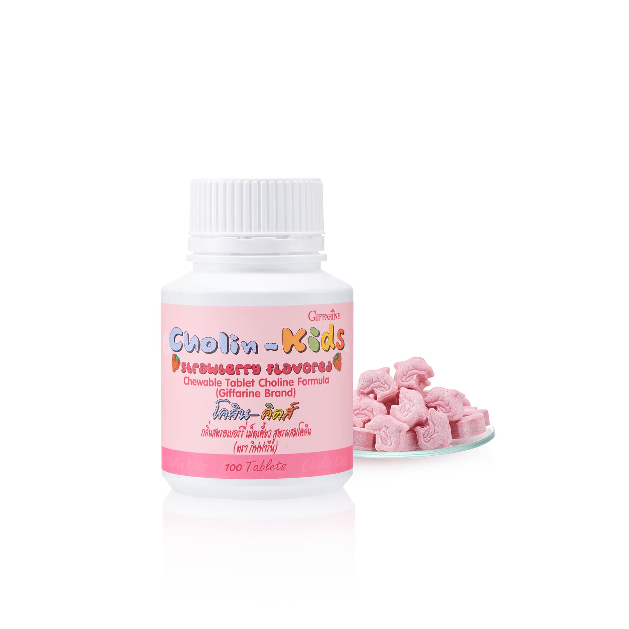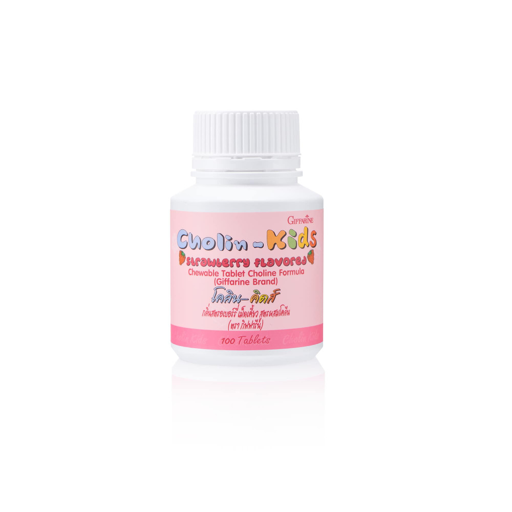เม็ดเคี้ยวสูตรผสมโคลีน ตรา กิฟฟารีน ส่วนประกอบสำคัญใน 1 เม็ด ประกอบด้วย : โคลีน ไบทาร์เทรต
